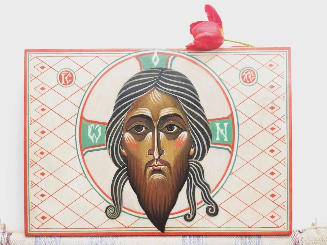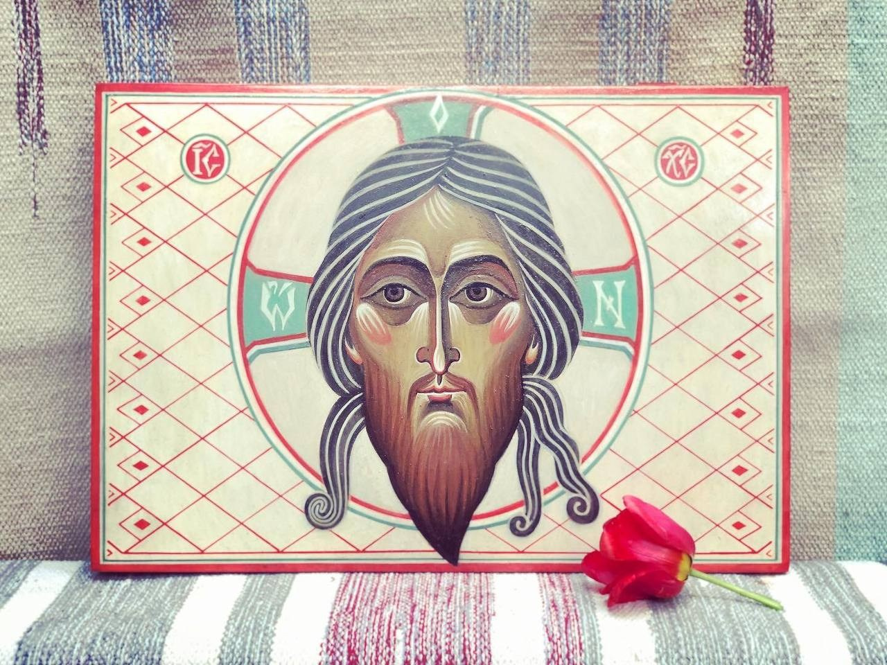 Икона Спас Неруктворный (45×31 см) написана натуральными пигментами на доске в 2017 г.